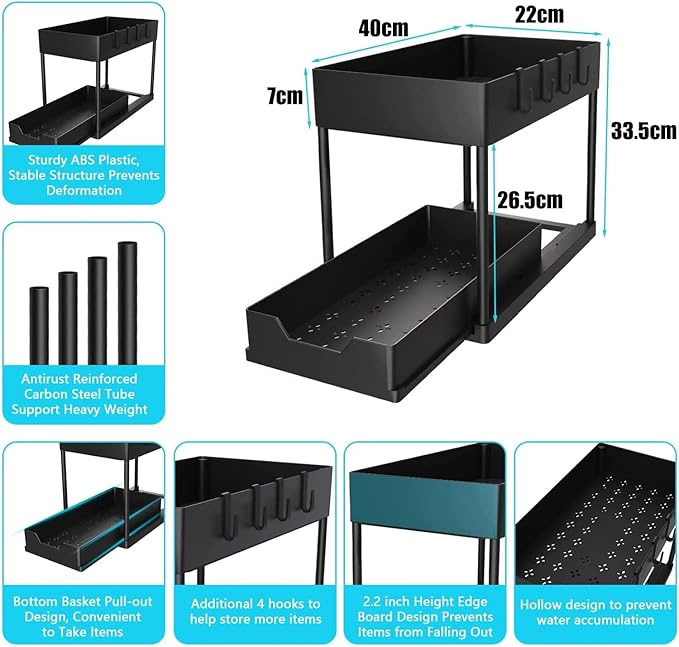 - يزيد مساحة التخزين أسفل الرف ويجعل الوصول سلسًا بدون انحناء