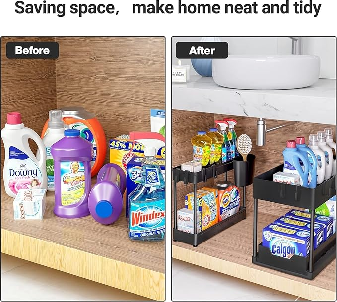 - مثالي لترتيب أدوات التنظيف داخل خزائن الحمام والمنظفات
